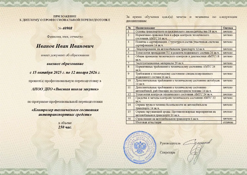 Повышение квалификации, 72 академических часа, 4 модуля: нормативные требования к техническому состоянию транспорта, технология и методы контроля, оценка состояния специализированного подвижного состава и автобусов, охрана труда и техника безопасности. Онлайн-обучение в в Горно-Алтайске с итоговой аттестацией.